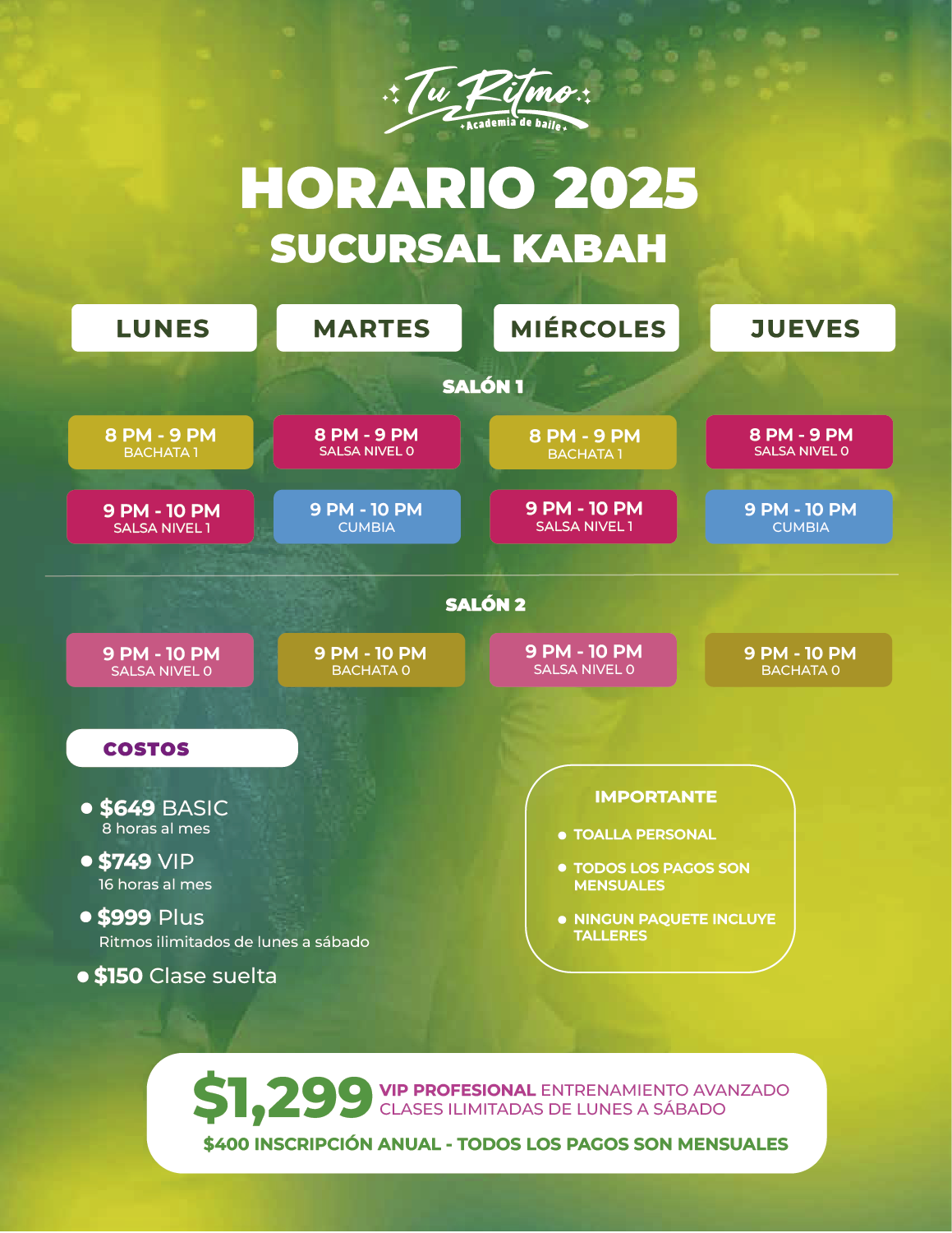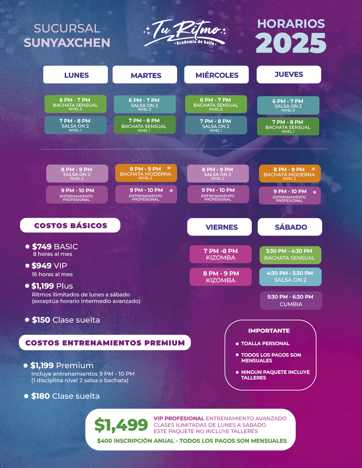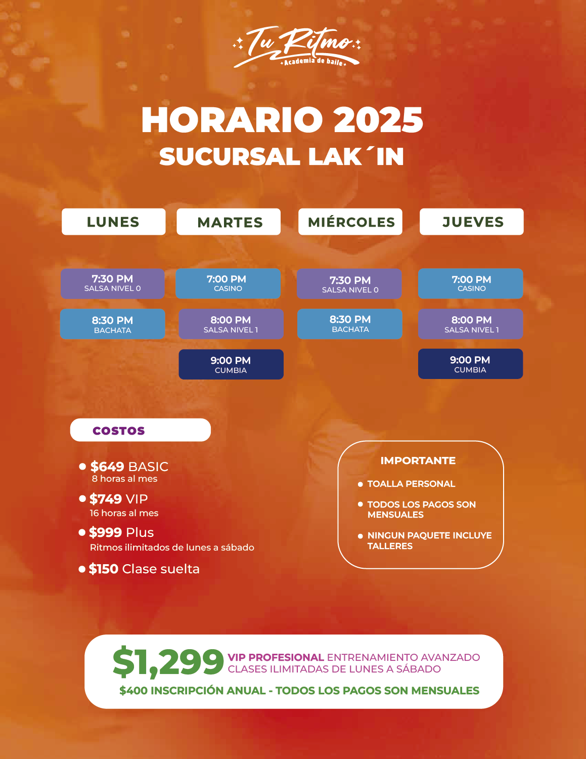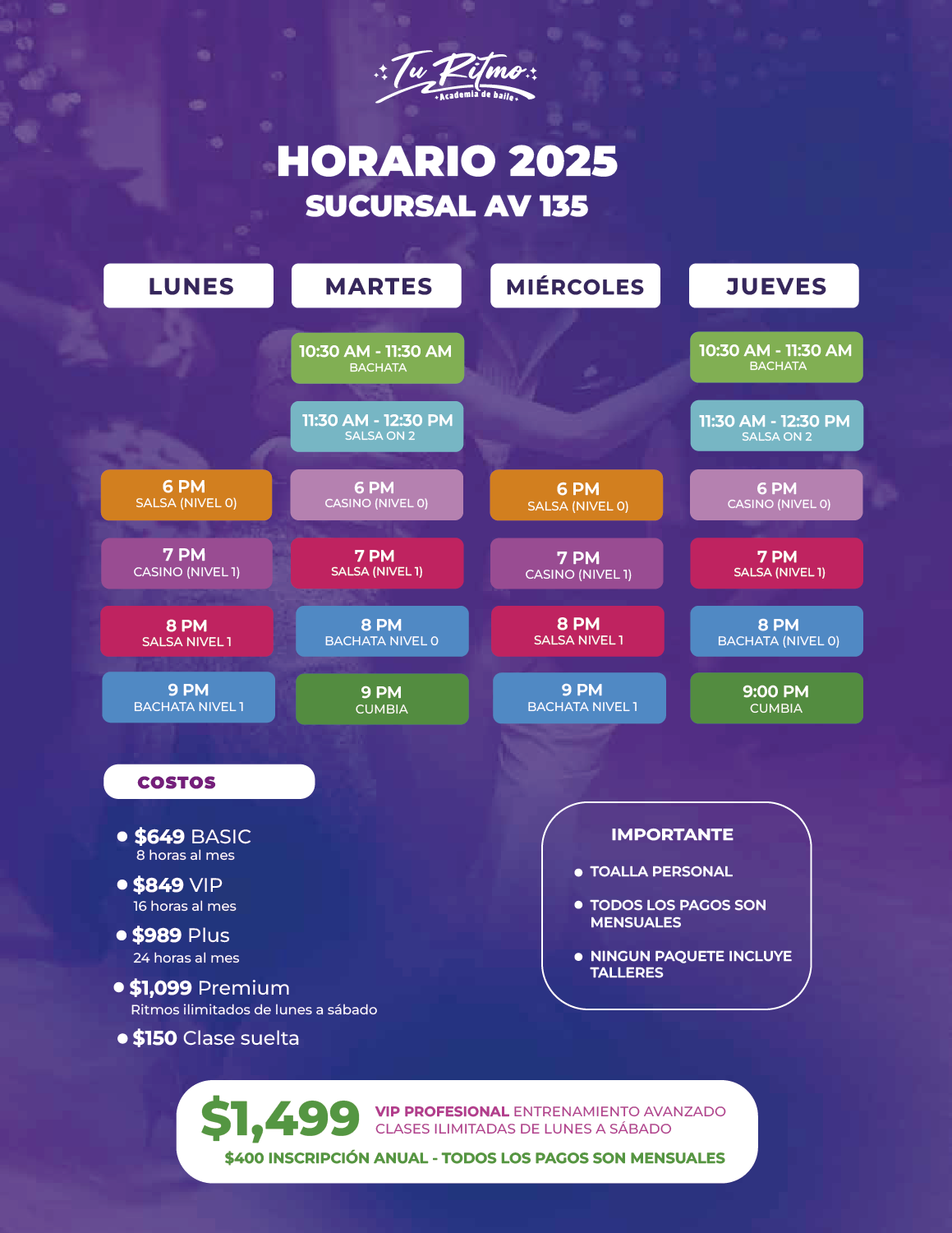 Descubre la magia del baile con nosotros. Elige el paquete que más se ajuste a ti y comienza tu aventura en la sucursal que prefieras. ¡Forma parte de nuestra gran familia TuRitmo y deja que el ritmo transforme tu vida!